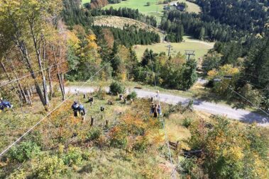 Gemeinsame Teamwanderung bei Burian & Kram zur Bergstation der Zipline Annaberg. Bei wunderbaren Herbstwetter führte unser Weg über den Herzerlweg auf die Annaalm, wo wir uns vom Aufstieg gestärkt haben. Danach wurde die Bergstation der Zipline, die wir bauphysikalisch begleitet haben, in Augenschein genommen. Die anschließende rasante Talfahrt kostete uns einiges an Überwindung, war aber dann schlußendlich ein würdiger Abschluss für einen schönen gemeinsamen Tag.